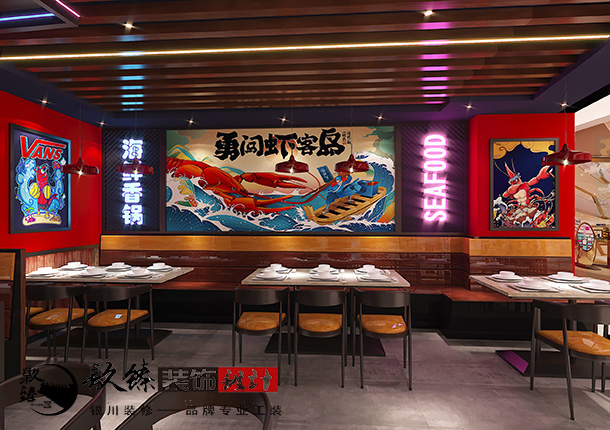銀川裝修公司請您欣賞一家專業(yè)以“魚和蝦”為特色的工業(yè)風連鎖主題餐廳