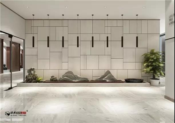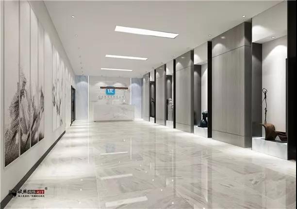 本案設(shè)計(jì)在滿(mǎn)足辦公空間功能需求的前提下,運(yùn)用現(xiàn)代、時(shí)尚、簡(jiǎn)約的設(shè)計(jì)語(yǔ)言,體現(xiàn)了建筑空間原有的美感。設(shè)計(jì)地磚采用白色的仿大理石地磚,在整個(gè)空間,精心選擇的顏色和材料調(diào)色板帶來(lái)了舒緩又有活力的效果,墻面采用了水墨色彩墻體,大廳整體簡(jiǎn)約大方。