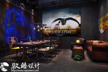 在房間一角設置了攝像機鏡頭造型的洗手臺,電影元素涂鴉的自然修飾,濃郁著復古懷舊風情。乍眼一看有點像機器人九號的眼睛,眼神中透露著對世界的求知欲,同樣,勇于探索也是這家餐廳的風格之一。水泥板鏤空的造型圖案,略帶創(chuàng)意的復古車輪造型燈,吸引了來餐廳用餐的人目光,非常有設計感,也脫襯得空間更加具有歷史感。