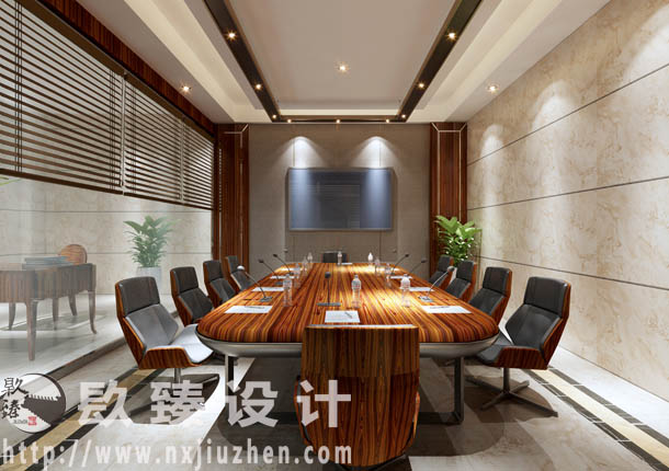 總經(jīng)理辦公室,簡(jiǎn)單的石膏線吊頂,水晶燈,烤漆木桌子,黑色皮椅,辦公桌后還有一個(gè)書柜,在這樣一個(gè)狹小的空間里,實(shí)現(xiàn)了這么多的功能,設(shè)計(jì)師對(duì)于每一個(gè)面積的使用都沒有浪費(fèi),做到了空間的合理利用。會(huì)議室使用烤漆色辦公桌搭配白色的地板顏色,既莊重又不是沉穩(wěn)。