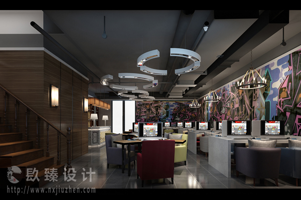 同時,設(shè)計師在網(wǎng)咖功能分區(qū),以人性化的服務(wù)理念為主,旨在為大家打造愉悅空間,設(shè)計師希望通過不一樣的風(fēng)格,為大家?guī)硐硎芎褪孢m的空間。在燈飾上,設(shè)計師采用富有個性的燈,也讓整個網(wǎng)咖看起來富有個性。
