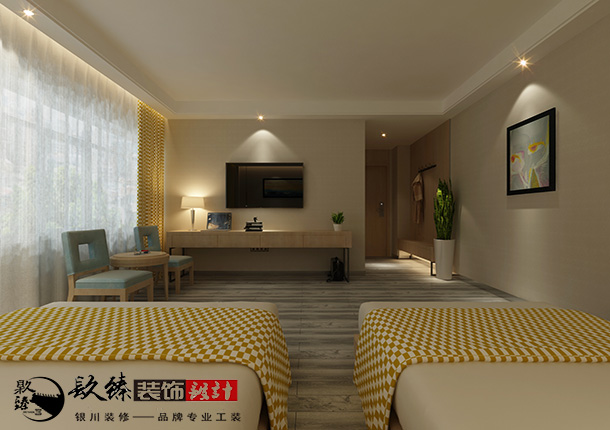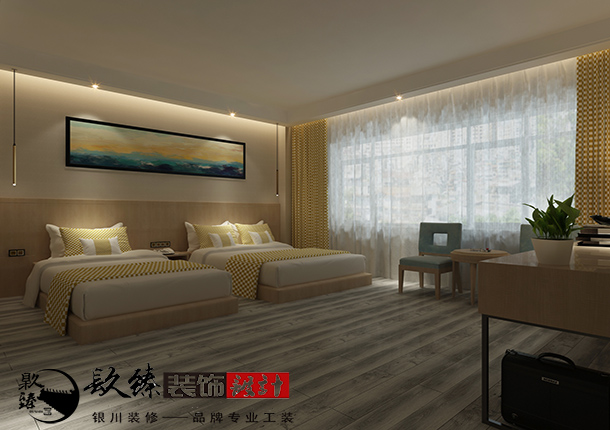 今天銀川裝修镹臻裝飾小編為大家?guī)淼木频臧咐龑儆诂F(xiàn)代簡約風,其裝修風格更接近原始自然,墻面多以清新的綠色和黃色做搭配,再植入一些裝飾畫進行配飾上面的搭配,簡單的基礎配色以及木質材料最終打造將該酒店以極簡主義的形式展現(xiàn)出來,檸檬黃在簡約風格中經(jīng)常被廣泛使用,這種顏色作為點綴的效果是非常好的,其活潑靚麗感為整個房間增添了潛移默化的跳動感。