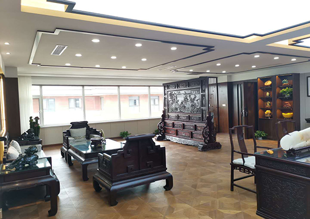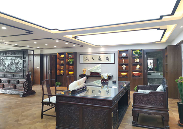 在一層的裝修設(shè)計中,將前臺劃分到這里,一直到二層的辦公區(qū),都是基礎(chǔ)的裝修設(shè)計。到了三層開始,就以深色為主。因為是經(jīng)理辦公室,所以將三層設(shè)計成有深厚沉穩(wěn)的底蘊,中式裝飾造型的風(fēng)格:主要采用硬朗簡潔的直線條,空間具有層次感,又符合現(xiàn)代人追求的時尚感、實用性。古典古香的基調(diào)、家具與裝飾的搭配。銀川裝修公司镹臻裝飾的設(shè)計師利用桃木的家具、定制桌椅、以增添新中式的原汁原味。