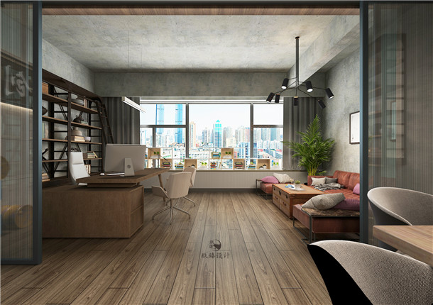 輾轉(zhuǎn)進(jìn)入二樓,實(shí)現(xiàn)了休閑區(qū)、接待區(qū)、經(jīng)理辦公室于一體的布局,金屬架構(gòu)屏風(fēng)作為區(qū)分休閑區(qū)和經(jīng)理辦公室的區(qū)域劃分,并不影響到空間的使用感并最大化合理的將空間進(jìn)行分隔?紤]到辦公區(qū)面積不是那么寬闊,設(shè)計(jì)師將所有的儲(chǔ)存空間定為隔層收納柜,這樣在視覺上是有將空間放大的感覺的,再放置一些工藝裝飾品,藝術(shù)感強(qiáng)烈上升。