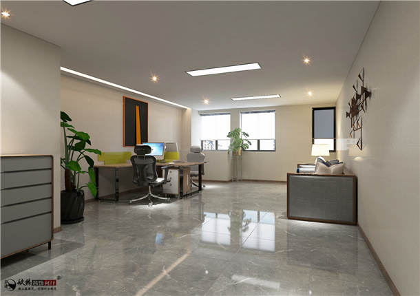 公共辦公區(qū)是辦公室的心臟,也是整個裝修設(shè)計的重點。設(shè)計裝修時不僅需要注重美觀性,實用性,整體性在整個裝修設(shè)計上更是重中之重。更尤為重要的是辦公區(qū)的燈光,既不能太強又不能太弱。 因此在設(shè)計色彩上主要以白色為基調(diào),頂部采用簡單的吊頂,并用現(xiàn)代風格掛畫來裝飾,不僅使得整個空間顯得開闊明亮,還讓辦公空間多了一份文藝氣息。