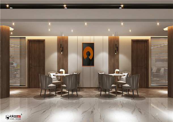 設(shè)計師通過簡化前臺裝飾元素來凸顯簡介的企業(yè)標識,讓綠植承載的環(huán)保元素更加醒目,同時也強調(diào)了企業(yè)的科技感。設(shè)計師在設(shè)計前方接待區(qū)的時候,充分運用了自然色+燈光的組合來強化企業(yè)內(nèi)涵體驗。沙發(fā)、地毯、茶幾與落地燈在開放的空間里構(gòu)建了一個心理上私密的會客區(qū)域,具有濃濃的現(xiàn)代科技氣息。