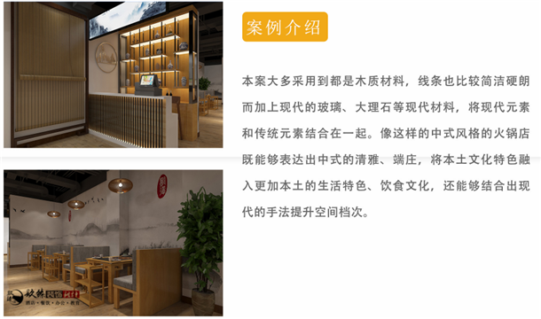 銀川火鍋店裝修|銀川火鍋店裝修設(shè)計(jì)|镹臻裝飾在店內(nèi)大多采用到的都是木質(zhì)材料,線條也比較簡潔硬朗,加上玻璃和大理石等現(xiàn)代材料,將現(xiàn)代元素和傳統(tǒng)元素結(jié)合在一起,像這樣的中式風(fēng)格的火鍋店,既能夠表達(dá)出中式的清雅端莊,將本土文化特色融入更加。特色飲食文化還能夠結(jié)合出現(xiàn)代的說法,提升空間檔次。